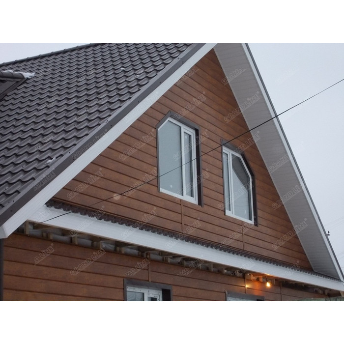 • В отличие от облицовки фасада деревом, металлический сайдинг «ЭкоБрус GL» прост в монтаже и не требует дополнительного послемонтажного ухода.