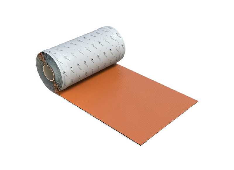 Рулонный материал из полиизобутилена, армированный алюминиевой сеткой, с самоклеящимися бутиловыми полосами на нижней стороне полотна и защитной антиадгезионной пленкой.