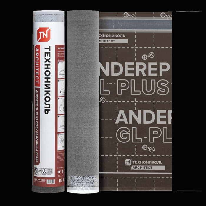 Битумно-полимерный подкладочный ковер механической фиксации с клеевыми монтажными полосами с основой из стеклохолста для скатных кровель с финишным покрытием из гибкой битумной черепицы.